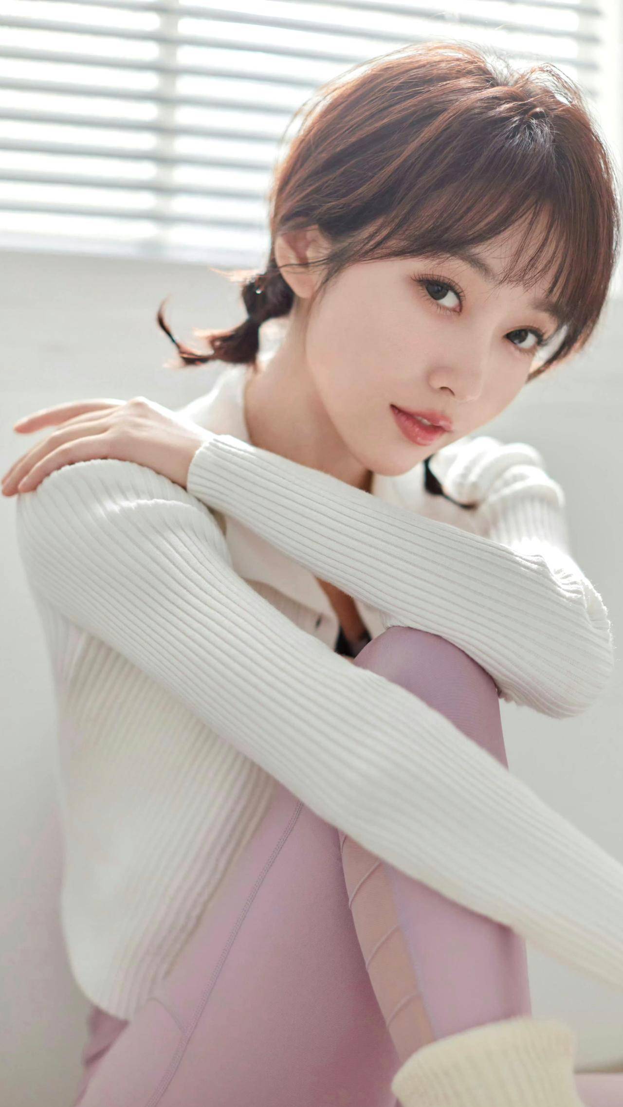 奶白针织开衫搭配浅紫瑜伽裤,元气又舒适,双麻花辫更是把少女感拉满。阳光透过百叶窗洒下,连发丝都带着温柔的氛围感。